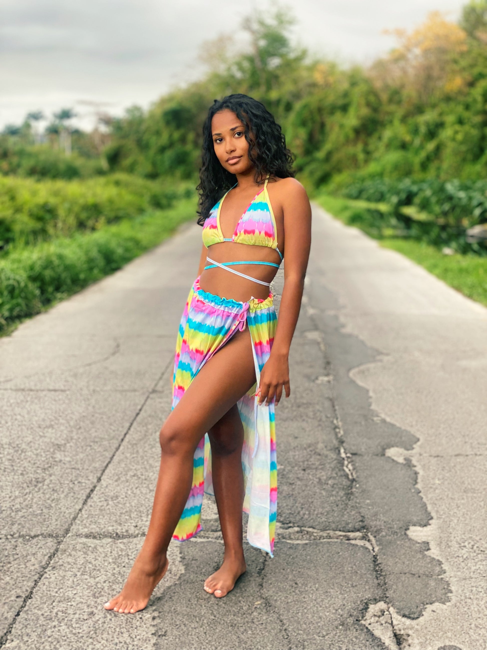 Découvrez notre ensemble de maillot de bain trois pièces, conçu pour allier style, confort et polyvalence. Composé d'un haut, d'un bas et d'un long gilet de plage, cet ensemble multicolore est parfait pour vos journées ensoleillées au bord de l'eau.