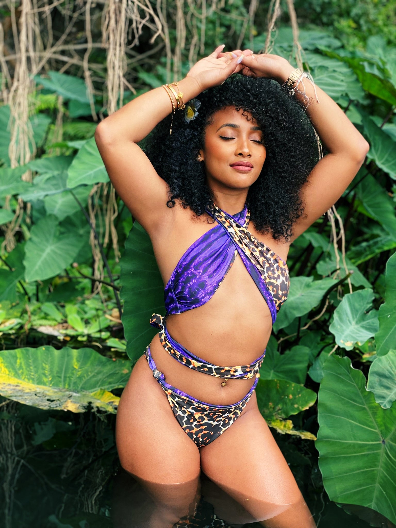 Adoptez la polyvalence et le style sauvage avec notre maillot de bain deux pièces réversible "Violeta", parfait pour celles qui aiment varier les plaisirs et se sentir uniques à chaque instant.