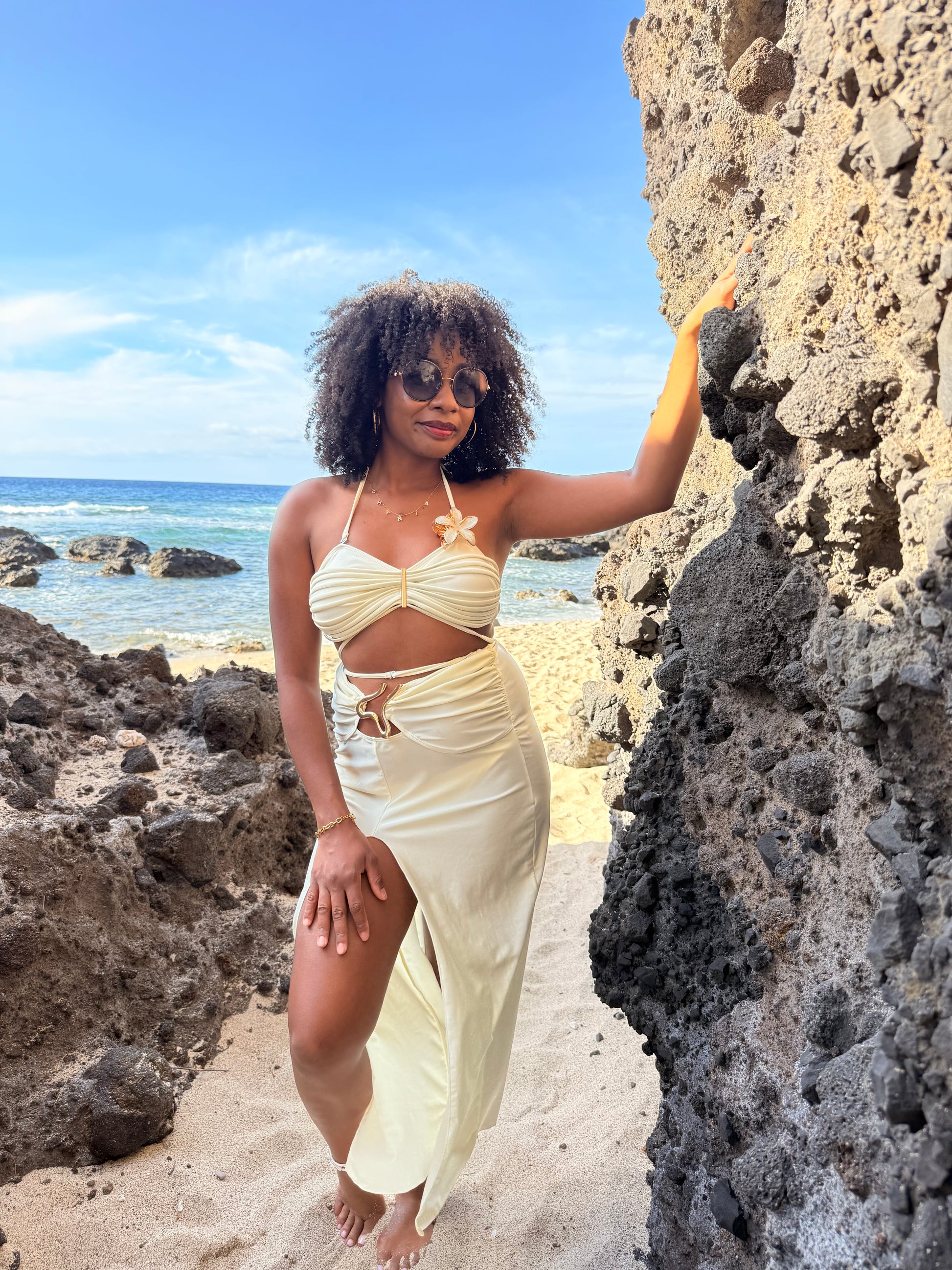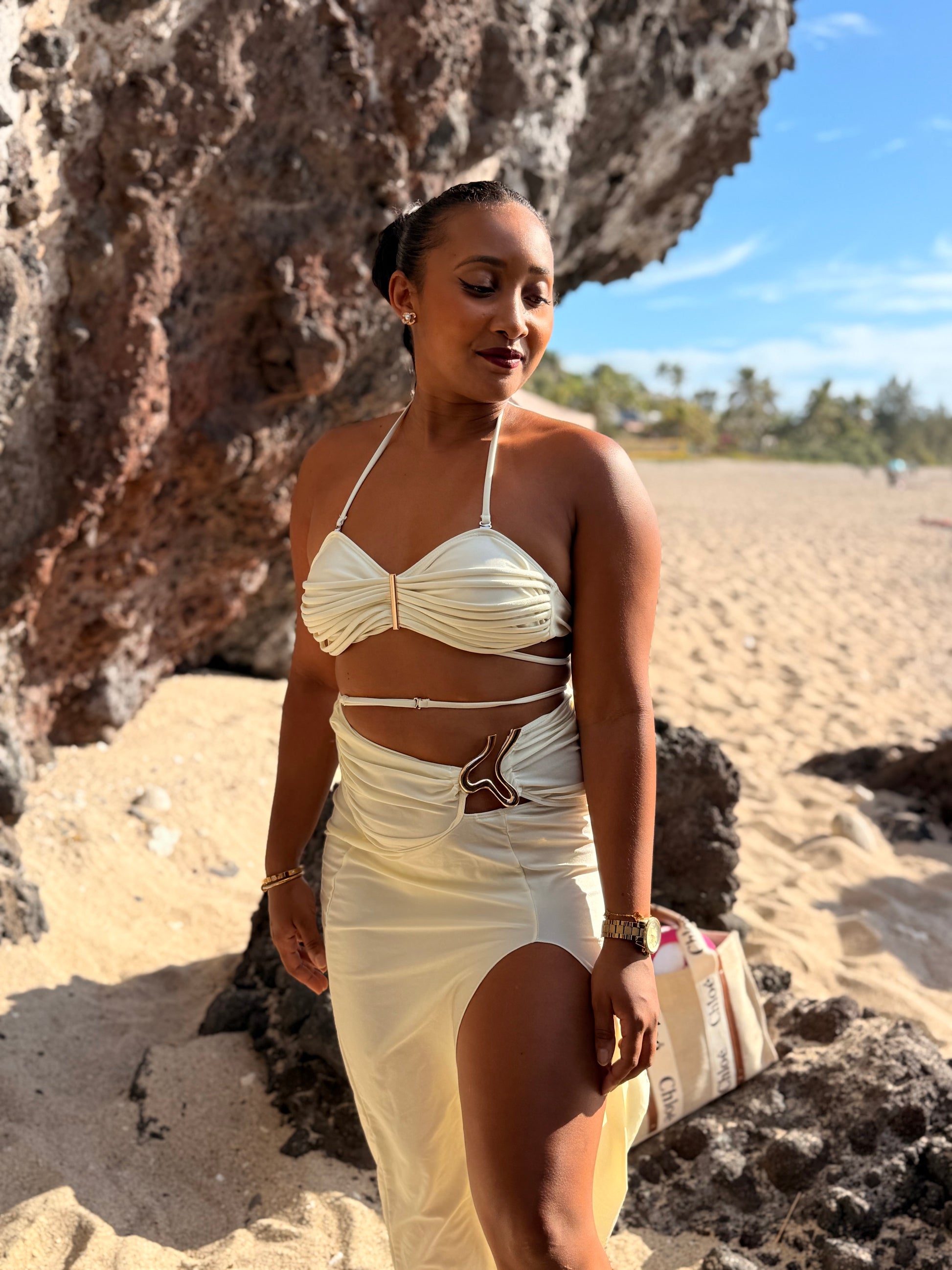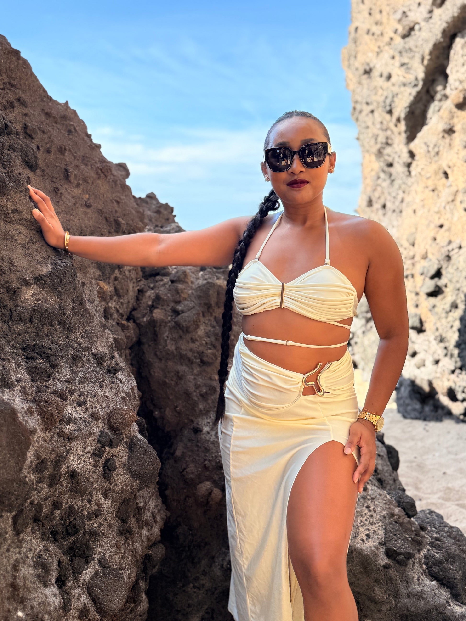 Parfait pour se démarquer sur les plages de La Réunion ou lors de vos journées piscine. Le maillot de bain est conçu pour celles qui souhaitent allier style audacieux et confort, avec un bas + jupe et un haut moderne.